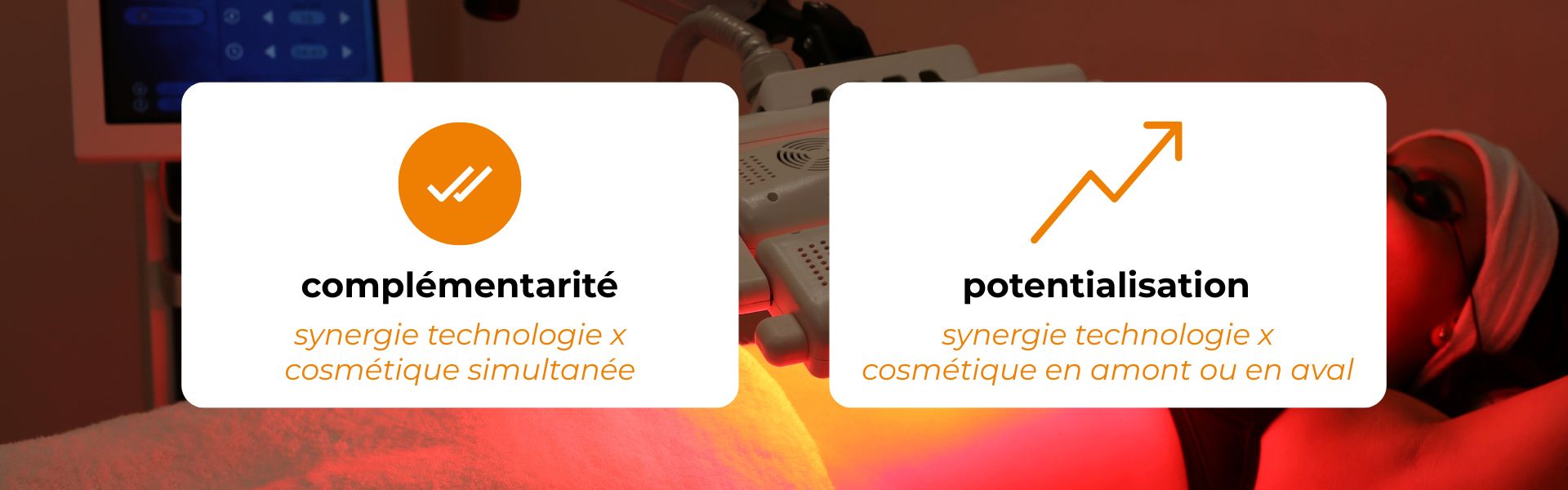 Un bon cosmétique potentialise toujours une technologie. Utilisés seuls, les cosmétiques apportent déjà des bénéfices visibles. Associés aux technologies esthétiques, ils deviennent de véritables accélérateurs de résultats.